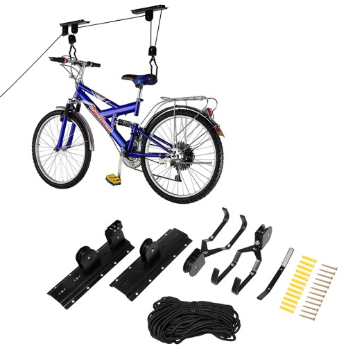 ✅ Pozwala w łatwy i bezpieczny sposób podwiesić pod sufitem nie tylko rower, ale też rzeczy takie jak drabina, kajak itp.,
