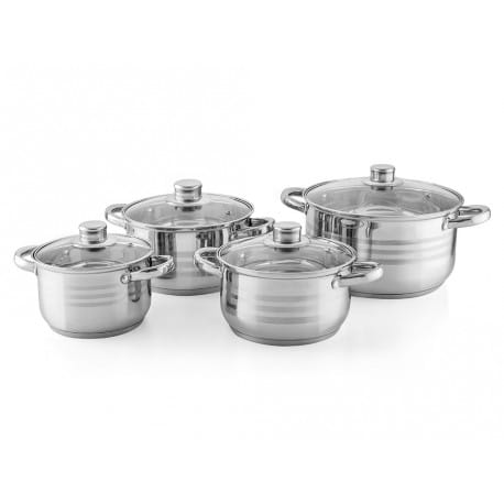 Komplet garnków ANTER FLORINA wykonane są z wysokiej jakości stali nierdzewnej, odpornej na korozję, łatwej w czyszczeniu i bezpiecznej dla Twojego zdrowia. Zastosowane wielowarstwowe dno odpowiada za równomierne rozprowadzenie ciepła. Dzięki temu, Ty gotujesz szybciej, oszczędzasz energię a Twoje dania nabierają smaku i nigdy się nie przypalają.