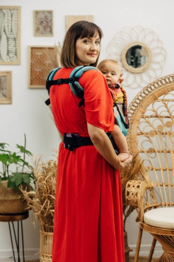 Elastyczność: dwie pozycje noszenia- z przodu od drugiego miesiąca życia oraz na plecach od czwartego miesiąca życia