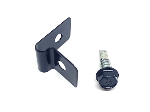 Komplet składa się z blaszki ocynkowanej w kolorze grafitowym RAL 7016 oraz wkrętu samowiertnego 4,8x16 grafit