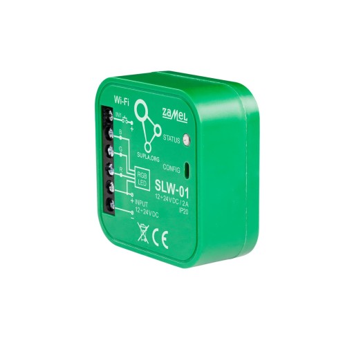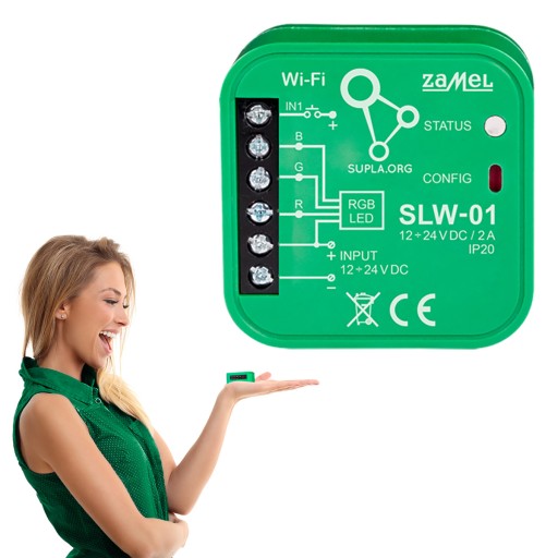 - Dzięki urządzeniu SLW-01 możesz komfortowo sterować oświetleniem RGB z poziomu smartfona lub włączać i wyłączać za pomocą zwykłego łącznika ściennego.