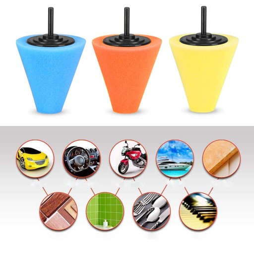 НАБОР ИЗ 3-Х ГУБКИ ПОЛИРОВАЛЬНЫХ КОНУСОВ ДЛЯ ДРЕЛЬ И ОТВЕРТКИ ДЛЯ АВТОМОБИЛЬНЫХ ДИСКОВ