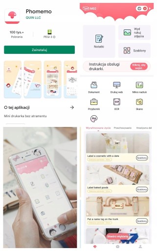 Przy pomocy intuicyjnej i darmowej aplikacji Phomemo w języku POLSKIM na Android oraz iOS: