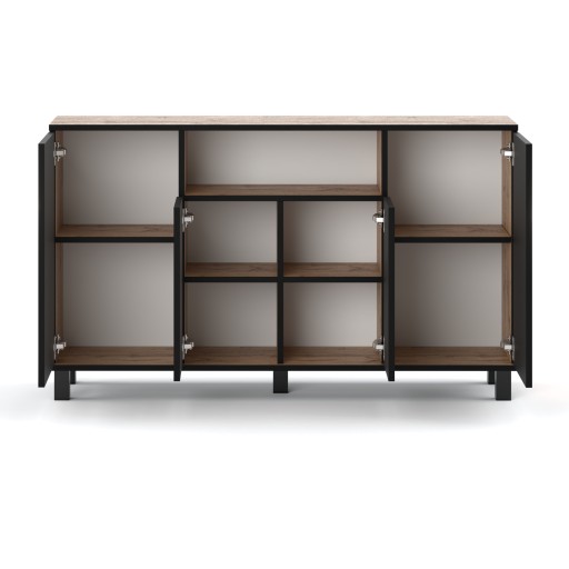KOMODA SZAFKA DĄB WOTAN CZARNA 140CM LOFT 4 DRZWI