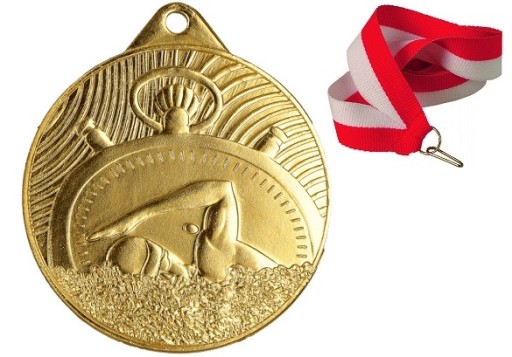 ЗОЛОТАЯ МЕДАЛЬ ПО ПЛАВАНИЮ 50 ММ + ЛЕНТА НОВЫЙ УЗОР