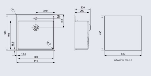 - TYP MONTAŻU: wpuszczany / zintegrowany z blatem
