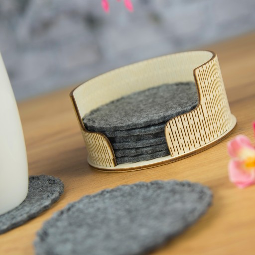 Filcowe podkładki pod kubki 6szt + drewniany organizer - oryginalny i funkcjonalny zestaw wystroju wnętrz.