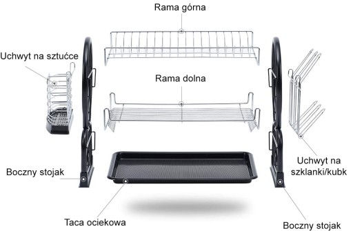 - Wymiary: 56.5 x 25 x 38 cm ( razem z ociekaczami na szklanki sztućce )