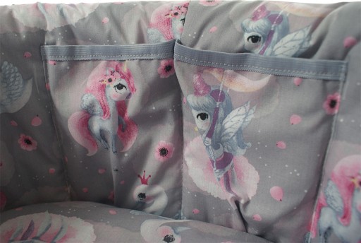 Materacyk posiada zakładkę/ kieszeń umożliwiającą założenie na zagłówku wózka dziecięcego.
