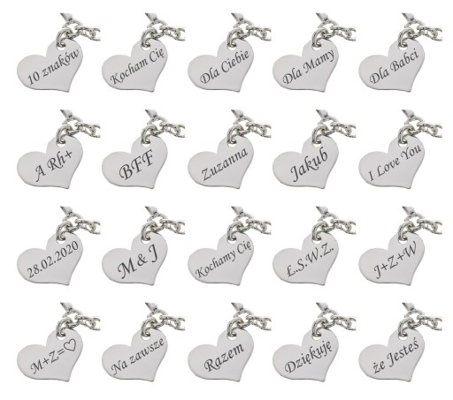 Grawerunek do 10 znaków na jednej stronie serduszka.