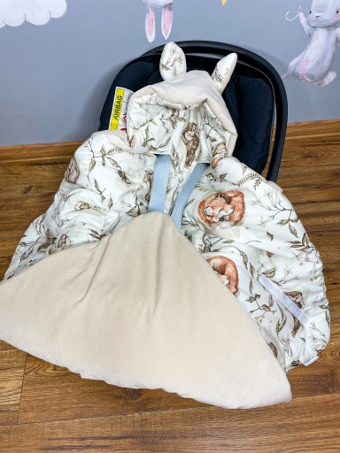 Śpiworek idealnie sprawdzi się na podczas jazdy samochodem oraz wózkiem. Kapturek dodatkowo chroni główkę przed wiatrem.