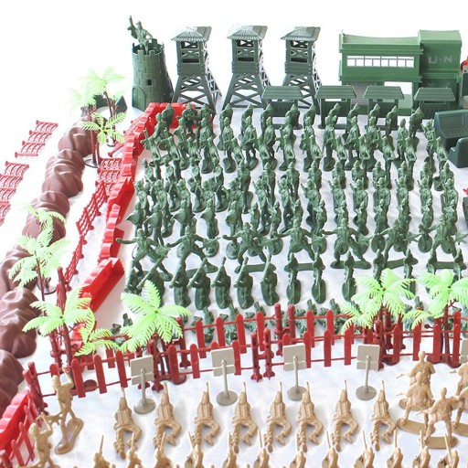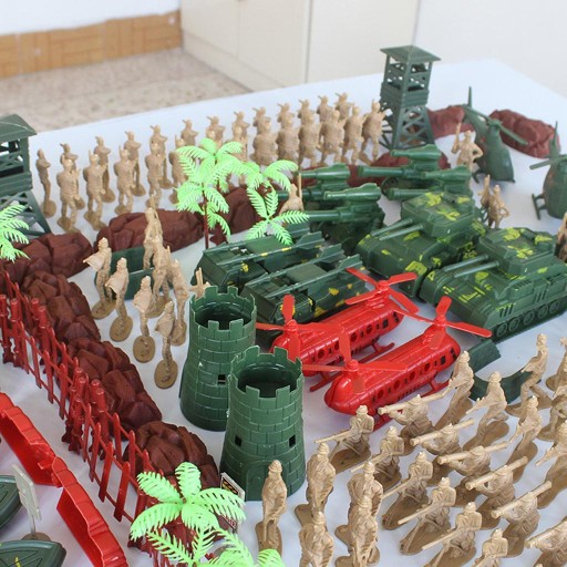 Includes approx. 300 pieces 5cm soldiers figures (in 2 colors), 2 pieces Army Office, 6 Tanks, 2 Helicopters, 8 Warplanes and other accessories (we will send randomly, some small accessories will be different)