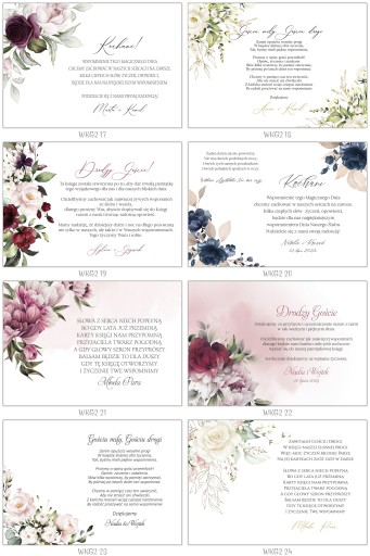 Projekt przygotowujemy indywidualnie, możemy go przygotować na podstawie każdego z naszych wzorów zaproszeń dzięki temu możesz zamówić zarówno zaproszenia jak i wszystkie dodatki z tym samym motywem graficznym.