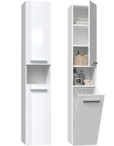 SZAFKA ŁAZIENKOWA REGAŁ SŁUPEK KOSZ BIAŁY POŁYSK
