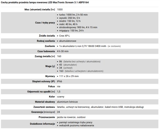 Велосипедный фонарь MacTronic Scream 3.1 ABF0164