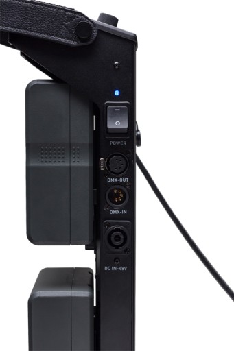 Aby utrzymać nisko położony środek ciężkości i zapewniśc dostępność do wszystkich elementów sterowania - panel sterowania Forza 500, zasilacz sieciowy i płytka akumulatorów zostały połączone w jedną jednostkę, którą można łatwo zawiesić na dowolnym stojaku. Jednostka służy również jako punkt połączenia DMX, dzięki czemu Forza 500 można szybko dostosować do dowolnego środowiska kontrolowanego przez DMX.