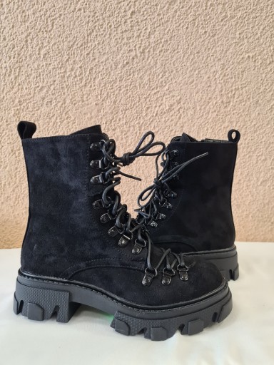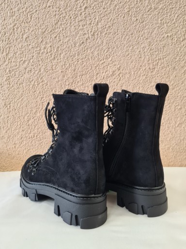 BOTKI (TRAPERY) SEASTAR- Świetne botki na chłodniejsze dni! Wykonane z przyjemnego w dotyku eko zamszu. Wnętrze ocieplone miłym w dotyku futerkiem. Posiadają suwak ułatwiający zakładanie obuwia oraz wiązanie. Botki z usztywnianym zapiętkiem. Masywna platforma z płaskim obcasem gwarantuje stabilność.