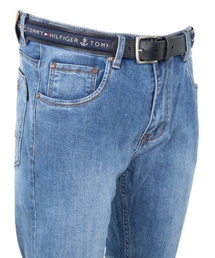 Klasyczne męskie jeansy o prostym kroju, prosta nogawka. Wygodny i miękki materiał. Pasek jest tylko do zdjęcia.