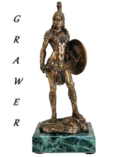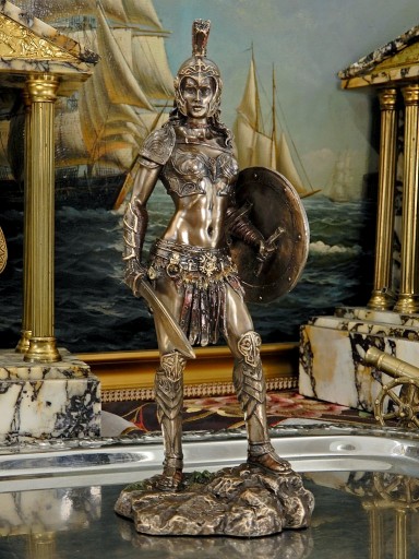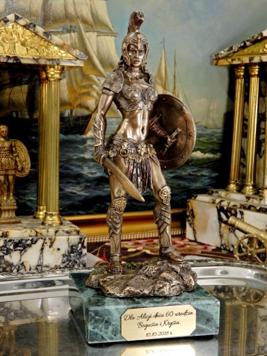 Zapraszam do zakupu wspaniałej figurki przedstawiającej antyczną wojowniczkę, która dzierży miecz oraz tarczę i wypatruje kolejnej bitwy. Bije od niej siła i pewność siebie. Doskonały pomysł na prezent np. dla przyjaciółki.