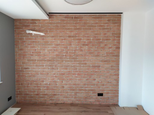 Każda płytka jest zupełnie inna , co pozwala nam wykonać ścianę wyglądającą jak murowaną z naturalnej cegły