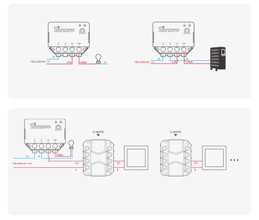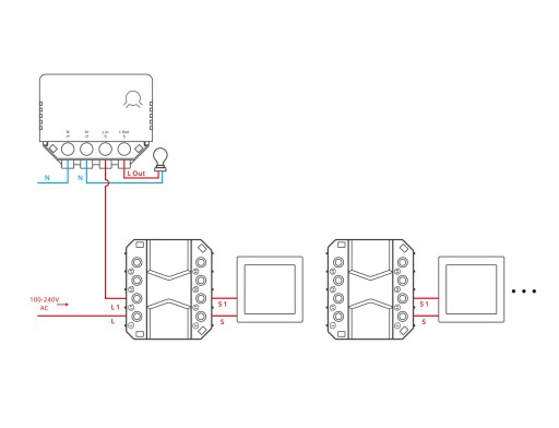 SONOFF S-MATE może podłączyć zwykły przełącznik ścienny 1/2/3 przycisków, który działa jako pilot.