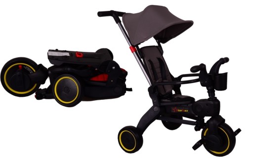 Funkcjonalny, nowoczesny, praktyczny rowerek trójkołowy z prowadnikiem.