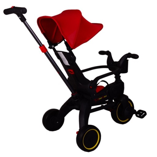 Funkcjonalny, nowoczesny, praktyczny rowerek trójkołowy z prowadnikiem.