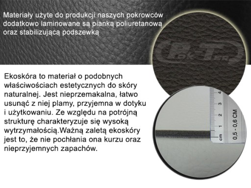 W całości laminowane są 3 mm pianką poliuretanową, zapobiegającą przesuwaniu się pokrowców względem foteli.