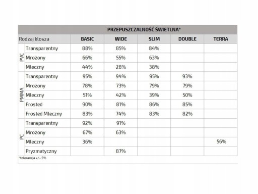 ✅ PRZEPUSZCZALNOŚĆ ŚWIATŁA JEST ZBLIŻONA DO KLOSZA MLECZEGO ✅