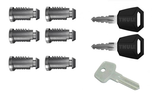 Komplet wkładek zamkowych Thule. W zestawie specjalny klucz zerowy pozwalający na wymianę wkładek.