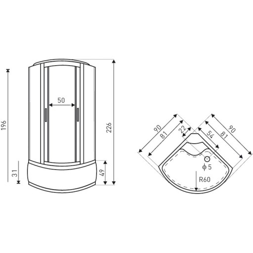 Kabina o wymiarach 90 x 90 x 226 cm z brodzikiem