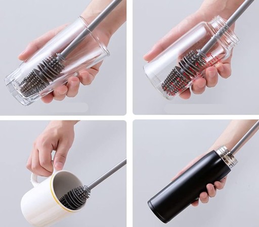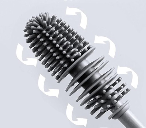 Nowoczesna, silikonowa szczotka do mycia butelek oraz innych miejsc trudno dostępnych pozwala na dokładne ich czyszczenie bez zagrożenia uszkodzenia butelek. Jest jej wykonanie z miękkiego silikonu pozwala na mycie rzeczy bez ich rysowania.