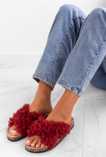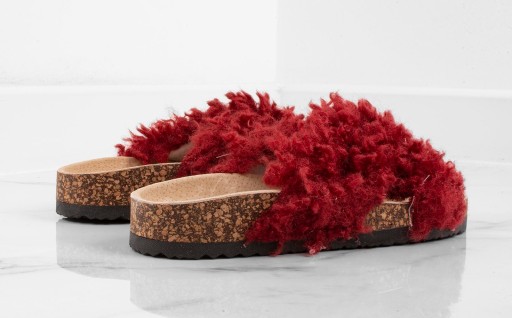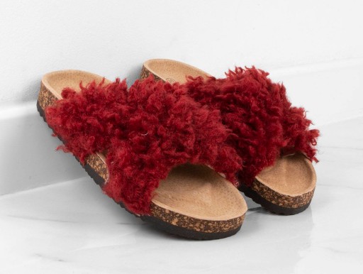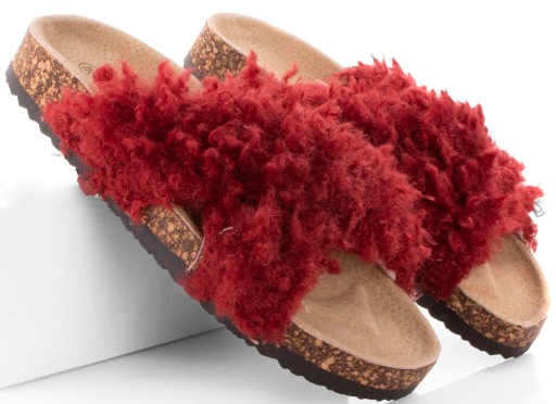 Najmodniejsze klapki z futerkiem z odkrytymi palcami. Na korkowej podeszwie, bardzo wygodne i stylowe. Buty sprawdzą się zarówno jako kapcie po domu a także jako element codziennych stylizacji.