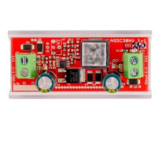 ASDC-30-240-OF to nieizolowana przetwornica DC/DC obniżająca napięcie. Urządzenie jest zasilane z napięcia 24 ... 50 VDC (np. z linii PoE 48 V) i dostarcza stabilizowanego napięcia wyjściowego o poziomie 24 V. Podstawowym zastosowaniem adaptera jest zasilanie urządzeń WiFi i innych elementów monitoringu wymagającym napięcie 24 V.