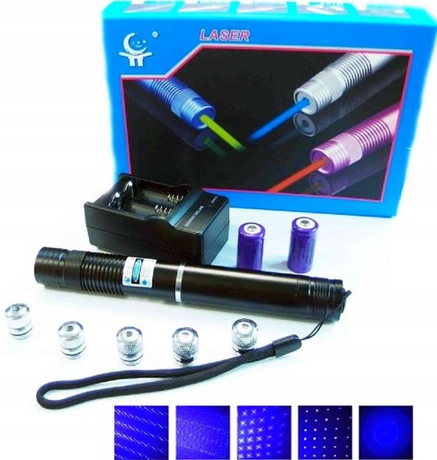 МОЩНЫЙ СИНИЙ ЛАЗЕР ПРОЖОГ ЛАЗЕРНАЯ УКАЗКА 5 Вт + НАСАДКИ ДЛЯ ДИСКОТЕКИ