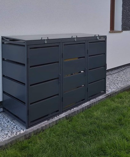 OSŁONA, OBUDOWA KOSZY NA ŚMIECI 120L. STALOWA. Na 3 pojemniki