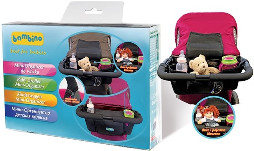 Mini torba do wózka z uniwersalnymi zaczepami na rzep od marki Bambino. Wystarczająco pojemna na drobiazgi potrzebne na niedługie spacery z Bobasem. Główną komorę można zakryć materiałem z zapięciem na rzep. Organizer także posiada wygodną rączkę, z której możemy skorzystać, gdy np. torbę zabieramy do domu.