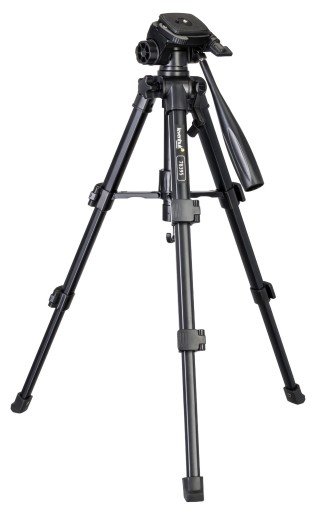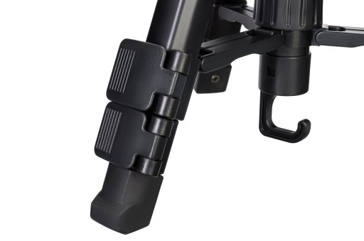 Ten statyw podłogowy z trzema sekcjami jest wykonany z aluminium. Każda noga ma blokady zatrzaskowe umożliwiające osobną regulację wysokości. Kolumnę środkową można podnosić lub opuszczać przy użyciu specjalnego pokrętła blokującego. Wysokość statywu wynosi 700 mm. Kolumna środkowa jest wyposażona w hak. Służy on do dociążania statywu, aby uzyskać maksymalną stabilność. Poziomica pęcherzykowa służy do ustawienia aparatu równolegle do podłoża.