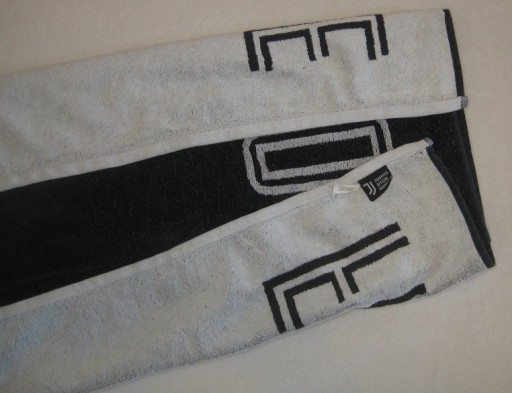 Ręcznik - Fino alla Fine - w barwach Juve. Produkt oryginalny. Wymiary: 128 x 65 cm. Używany. Stan jak na zdjęciach. Z Włoch. Cena za 1 szt.
