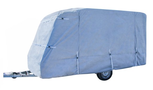 Pokrowiec na przyczepę kempingową do użytku całorocznego wykonany z wysokiej jakości materiałów odpornych na warunki atmosferyczne.