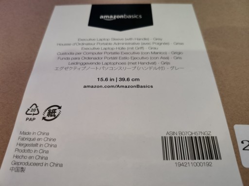 Pokrowiec (etui) na laptopa marki: AmazonBasics, rozmiar: 15,6", kolor: szary, kod producenta: AMSL19017