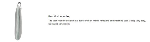 Przyjazna dla użytkownika konstrukcja z zamkiem błyskawicznym sprawia, że wyjmowanie i wkładanie laptopa jest bardzo łatwe, szybkie i wygodne.