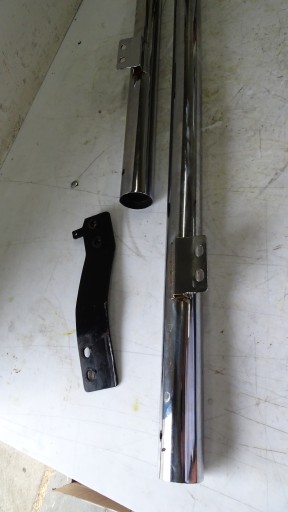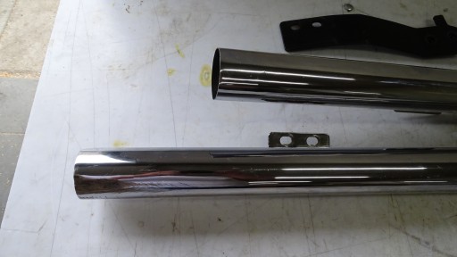 Tłumiki 100% sprawne, zdrowe, dolny tłumik przerysowany, delikatnie wgnieciony, rysy na chromowanej powierzchni, sprzedaję komplet, razem z mocowaniem, sprzedaję dokładnie to, co widać na zdjęciach.
