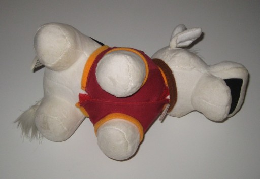 Maskotka reklamowa Latte Sano w barwach AS Roma (produkt promocyjny rzymskiej mleczarni Fattoria Latte Sano na licencji AS Roma). Rozmiar: długość 25 cm. Używana. Stan jak na zdjęciach. Z Włoch. Cena za 1 szt.
