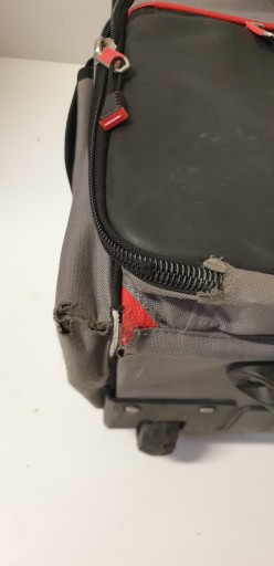 STAN PRODUKTU WIDOCZNY NA ZDJĘCIACH PONIŻEJ-POSIADA ZABRUDZENIA, PRZETARCIA NA KÓŁKACH ORAZ NA SPODZIE TORBY ORAZ DZIURKI !!