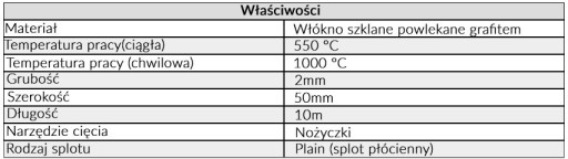 Bandaż wykonany jest z włókna szklanego z powłoką grafitową odporną na wysokie temperatury.