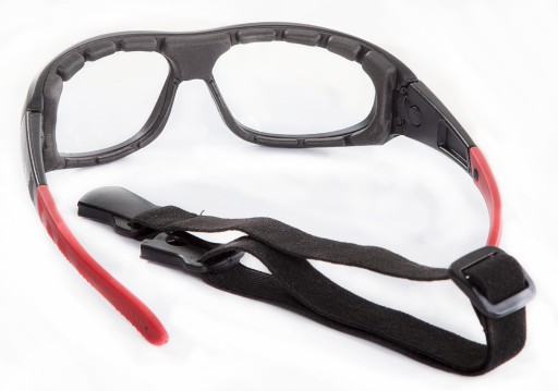 - Elastyczny pasek zapobiega spadaniu okularów podczas pracy