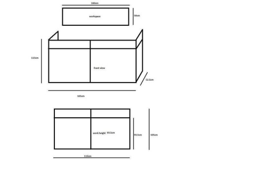 ma blat o szerokości 101 cm i głębokości 50 cm, przy wysokości roboczej 94cm, na którym można umieścić cały sprzęt (maks. 25 kg). Podwyższona krawędź kabiny zapewnia, że wszystkie kable są ukryte, a także zapewnia ochronę cennego sprzętu.