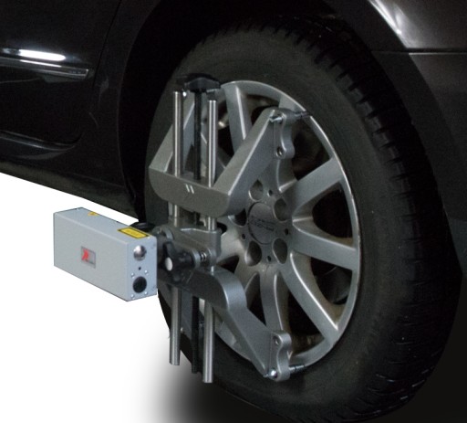 Zestaw 2 szt. (Zacisk 12”-24” z kompensatorem jednopłaszczyznowym z kom. łap dwustronnych + z emiterem laserowym) tworzą układ pomiarowy do wyznaczenia geometrycznej osi jazdy pojazdu w celu ustawienia przystawki do kalibracji radaru i kamer w jej osi