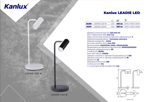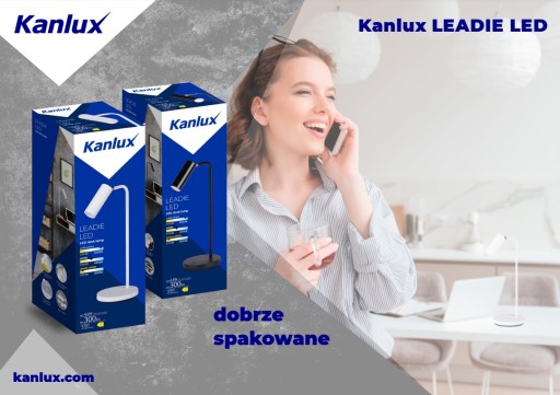 KANLUX LEADIE LED to elegancka lampka stojąca. Świetnie sprawdza się jako główne oświetlenie biurka, ale również jako dodatkowe źródło światła w pomieszczeniu. Może też pełnić funkcję lampki nocnej.